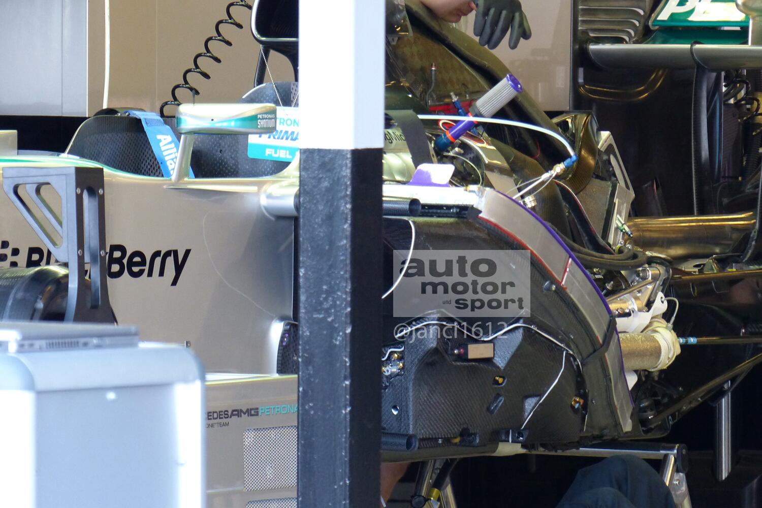 *Peut-etre que Mercedes et Ferrari n'avaient pas exactement les mêmes objectifs en recherchant cette compacité; les rouges avaient clairement l'efficacité aero en ligne de mire, ils ont tout fait pour affiner les pontons; Ils ont placé l'intecooler dans le V du moteur, déplacé plein de pièces importantes derrière le moteur (réservoir d'huile de ce dernier, MGUK!) par exemple. Alors que les gris recherchaient des gains partout (temps de réponse, températures, poids etc).